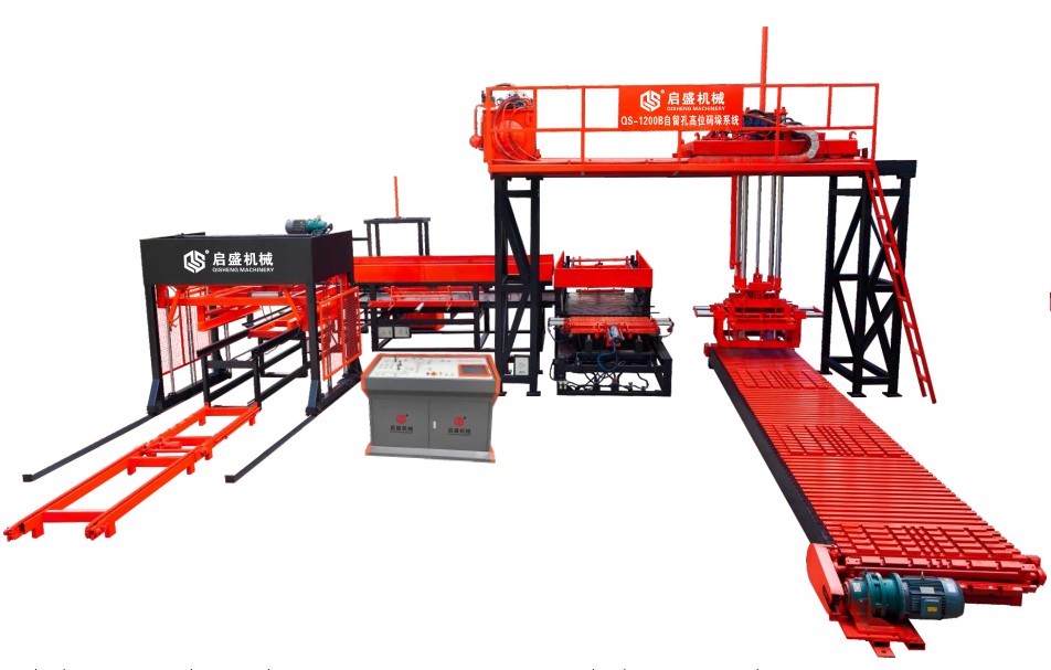 QS-1200B型自留孔高位碼垛系統(tǒng)是公司為了適應(yīng)市場多元化發(fā)展需要潛心研發(fā)的擁有獨立自主知識產(chǎn)權(quán)的專利產(chǎn)品.生產(chǎn)線適用于簡易型砌塊生產(chǎn)線的干產(chǎn)品碼垛,屬于半自動碼跺生產(chǎn)線,一般情況下獨立設(shè)置于產(chǎn)品養(yǎng)護堆場附近,對于養(yǎng)護好的制品就地碼垛,亦可串聯(lián)于砌塊生產(chǎn)線之中,實施在線碼垛。